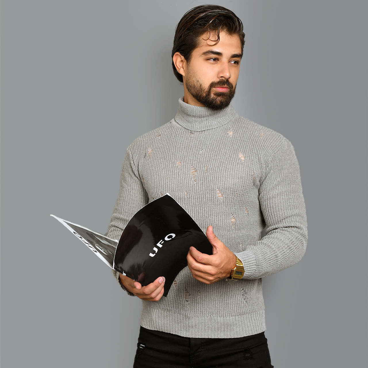 پلیور یقه اسکی کرم زاپ دار مردانه مدل U10