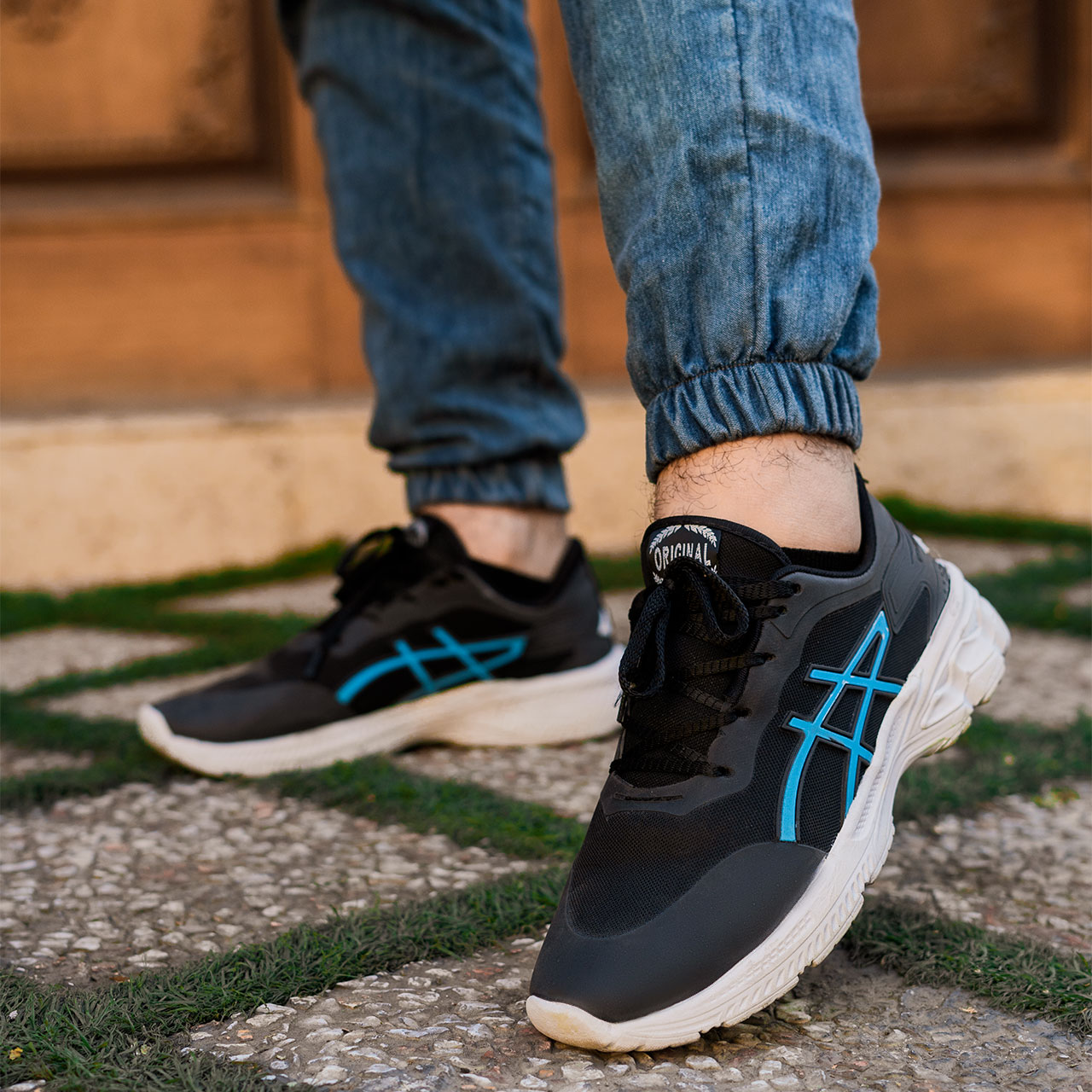 کفش ورزشی مشکی آبی زیره سفید مردانه مدل Rail