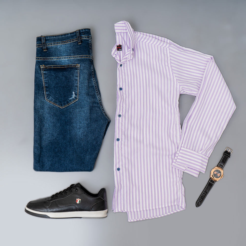 پیراهن راه راه سفید یاسی مردانه مدل HAMED